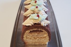 Wiener Boden mit Eielikörkrem gefüllt und ansprechend ausgarniert spezielle Garnierungen werden gern nach Ihrem Wunsch ausgeführt.